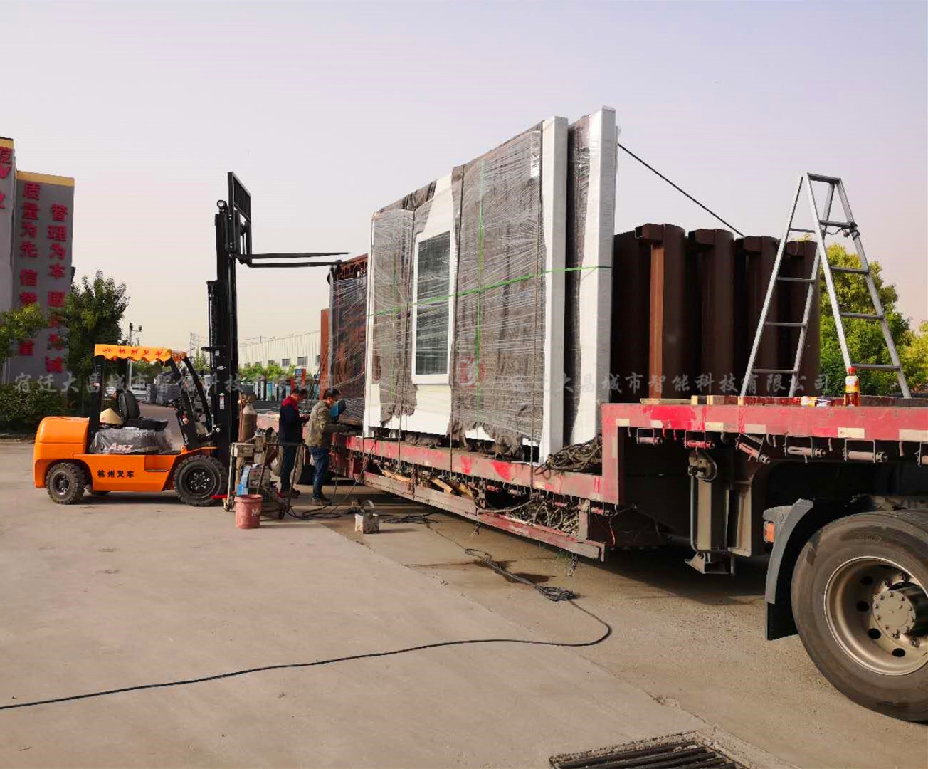 公交站臺(tái)燈箱第五批一大早開始裝車,工人們迎著朝陽很嫻熟地將候車亭頂棚和箱體牢牢樹立在車板上。雖然工人們早已是輕車熟路,但由于此次定制生產(chǎn)的河津港灣式公交站臺(tái)燈箱是個(gè)“龐然大物”,吊裝相對危險(xiǎn),所以每一步都很小心翼翼。別看一車只裝了四五套